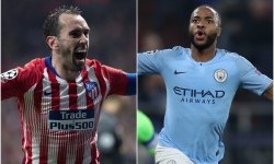 Kapten kesebelasan Atletico Madrid, Diego Godin (kiri) dan penyerang Manchester City, Raheem Sterling (kanan)