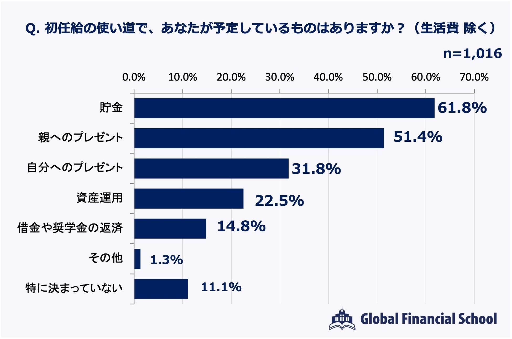 初任給の使い道、1位「貯金」・2位「親へのプレゼント」、5人に1人は「資産運用」