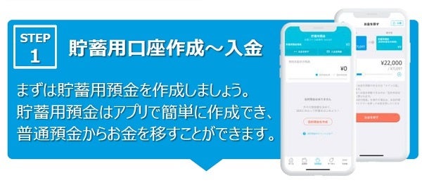 ■設定した目的ごとに、目標金額を自由に決める事ができ、金額の振替はスマホ上でできますので簡単です。